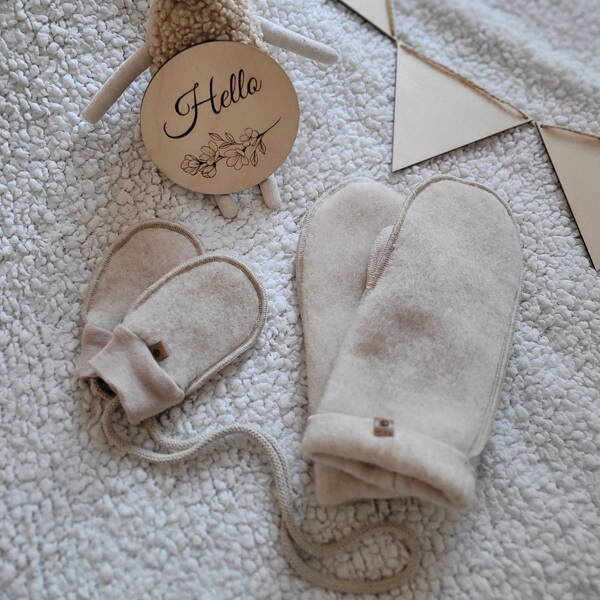Miękkie, wygodne i ciepłe rękawiczki na sznurku ze ściągaczem bez palców dla najmłodszych dzieci. Rękawiczki posiadają wszywki z ekoskóry.