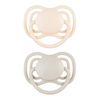 Smoczek uspokajający zrelaksuje i wyciszy Maluszka. Płaska gumka o symetrycznym kształcie jest przyjazna dla zgryzu i łatwa do zaakceptowania przez dziecko. Smoczek dobrze dopasowuje się do buzi dziecka niezależnie od sposobu umieszczenia, a jego kształt jest polecany przez ekspertów jako wspierający naturalny rytm ssania. Gumka została wykonana z najwyższej jakości, bezpiecznego i delikatnego silikonu. Jest bezzapachowa i bezsmakowa. Tarczka zapewnia maksymalny dopływ powietrza, dzięki czemu zapobiega podrażnieniom na delikatnej buzi dziecka i minimalizuje ryzyko odciskania się smoczka. Specjalnie zaprojektowany kształt tarczki ułatwia również swobodne oddychanie i połykanie śliny.