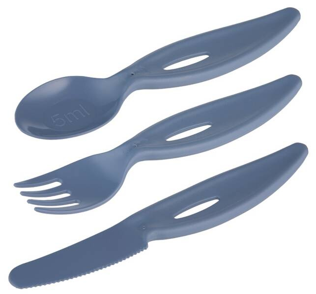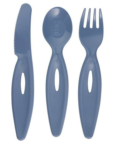 Sztućce mają szerokie uchwyty, które ułatwiają dziecku trzymanie i manipulowanie nimi. Zaokrąglone brzegi zapewniają bezpieczeństwo, chroniąc delikatne dziąsła dziecka. Łyżeczka z miarką 5 ml pozwala na precyzyjne odmierzanie porcji, a nóż z delikatnymi ząbkami jest bezpieczny dla malucha i idealny do nauki krojenia miękkich pokarmów.