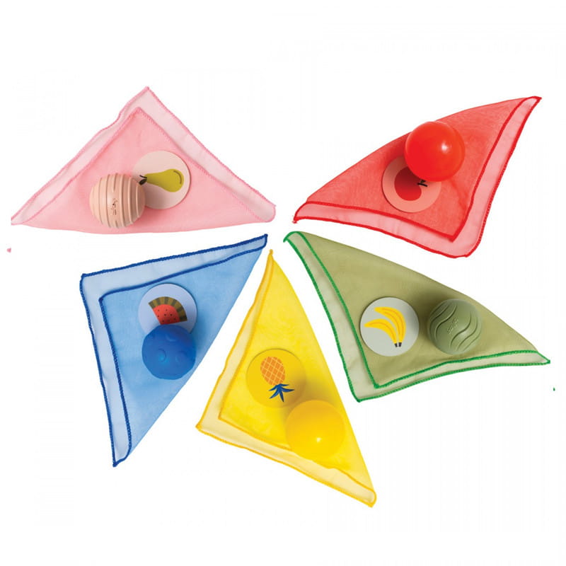 Idealny zestaw do odkrywania kolorów i ruchu - miękkie, kolorowe tkaniny i teksturowane kulki pomagają maluchom rozwijać zdolności chwytania i motoryki małej.