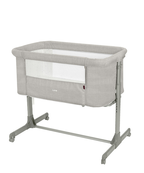 Carrello Luna — dziecięca dostawna kołyska dla noworodka Opis: Kołyska Carrello Luna jest odpowiednia dla noworodków od urodzenia do osiągnięcia wagi 9 kg. Może być używana jako wolnostojąca lub dostawiona do łóżka rodziców. Wysokość łóżeczka można regulować w 6 poziomach. Materacyk wchodzi w skład zestawu. Dzięki cyrkulacji powietrza, hipoalergicznym materiałom oraz twardej podstawie łóżeczka zapewniony jest zdrowy sen dziecka. Komfortowa i bezpieczna kołyska montowana jest jako dostawka do łóżka rodziców, zapewniając bliskość dziecka i matki podczas snu.