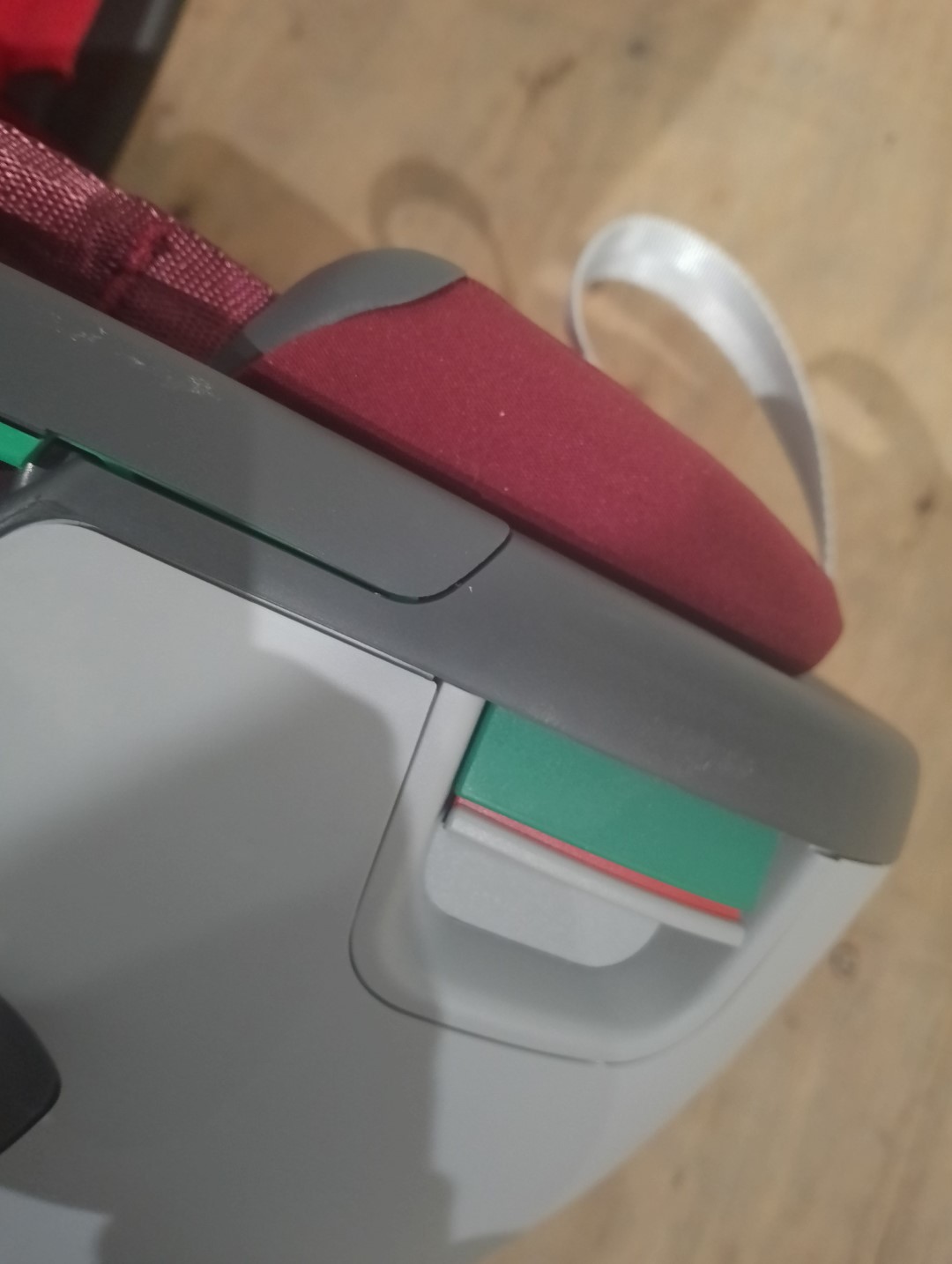 Żeby wyjąć nosidełko z korpusu, wystarczy nacisnąć dwa przyciski zwalniające, umieszczone z dwóch stron fotelika, poniżej nóżek malucha. Gotowe, można wysiadać. Po powrocie, o tym, czy nosidełko zostało właściwie wpięte, poinformują duże wskaźniki; Jeśli zmieniły kolor na zielony, możecie jechać bez obaw.