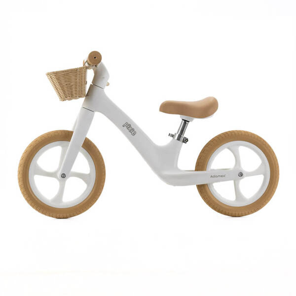 Rowerek PIXIE jest dostępny w 3 kolorach (biały, pudrowy róż, miętowy) w połączeniu z karmelowymi oponami, siodełkiem i kierownicą. Do kierownicy rowerka zamontowany jest koszyczek na zabawki/drobiazgi, który nadaje rowerkowi klimatu retro, a w razie potrzeby możesz go w łatwy sposób zdemontować.