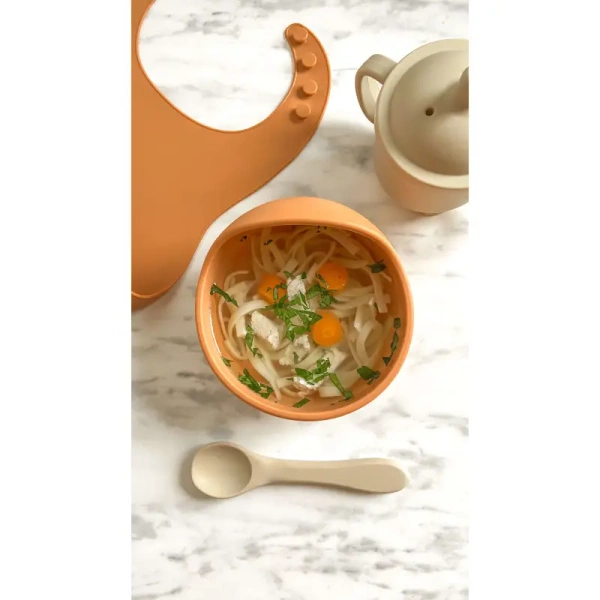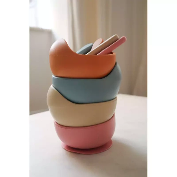 Zestaw wykonany z miękkiego i bezpiecznego dla dzieci silikonu przeznaczonego do kontaktu z żywnością.