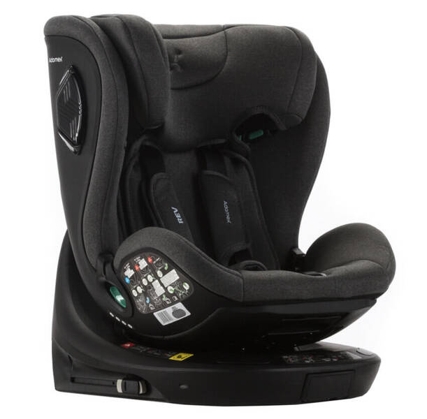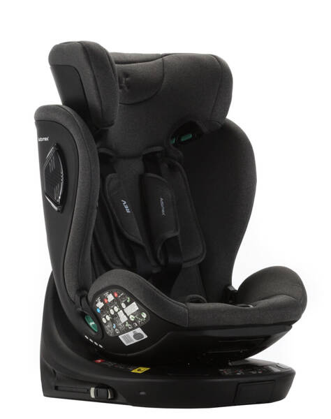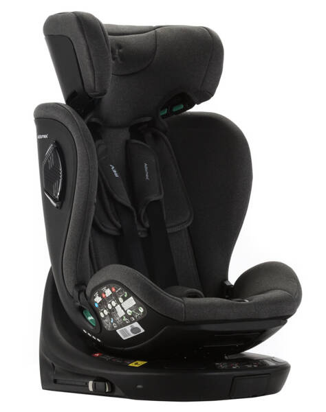 Fotelik jest zintegrowany z obrotową bazą 360 stopni, przez co wkładanie, wyjmowanie dziecka i codzienne użytkowanie jest intuicyjne i łatwe. Wystarczy użyć jednej ręki by zmienić pozycję fotelika tyłem lub przodem do kierunku jazdy – bez demontowania czegokolwiek i obciążania kręgosłupa!