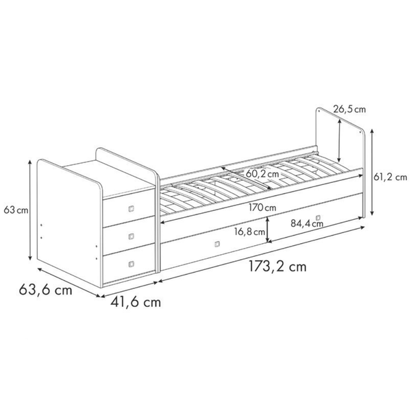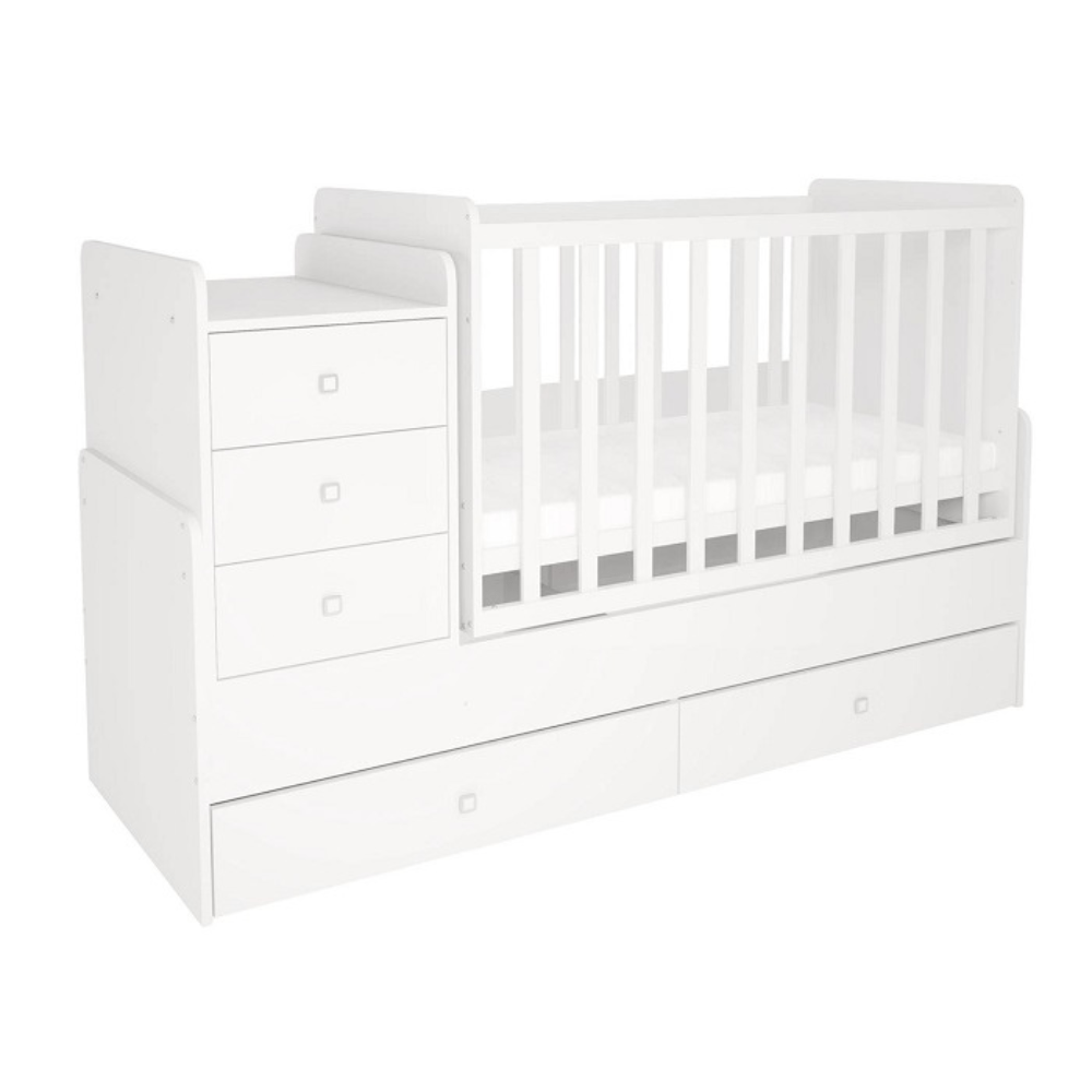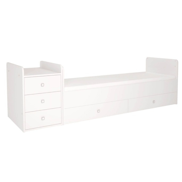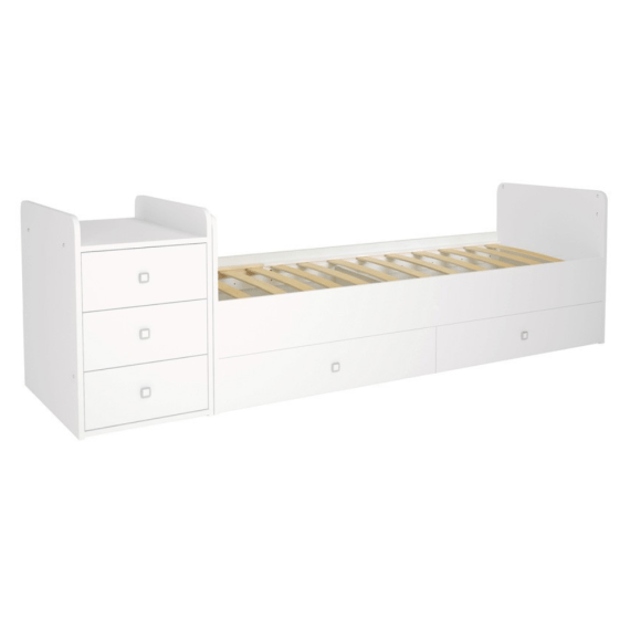 Funkcjonalność na lata: Mebel rośnie razem z Twoim dzieckiem, dzięki czemu dostosowuje się do jego zmieniających się potrzeb. Łatwo przekształcisz go w wygodne łóżko o wymiarach 170×60 cm, które idealnie sprawdzi się dla starszego dziecka oraz komodę do przechowywania ubrań, zabawek.