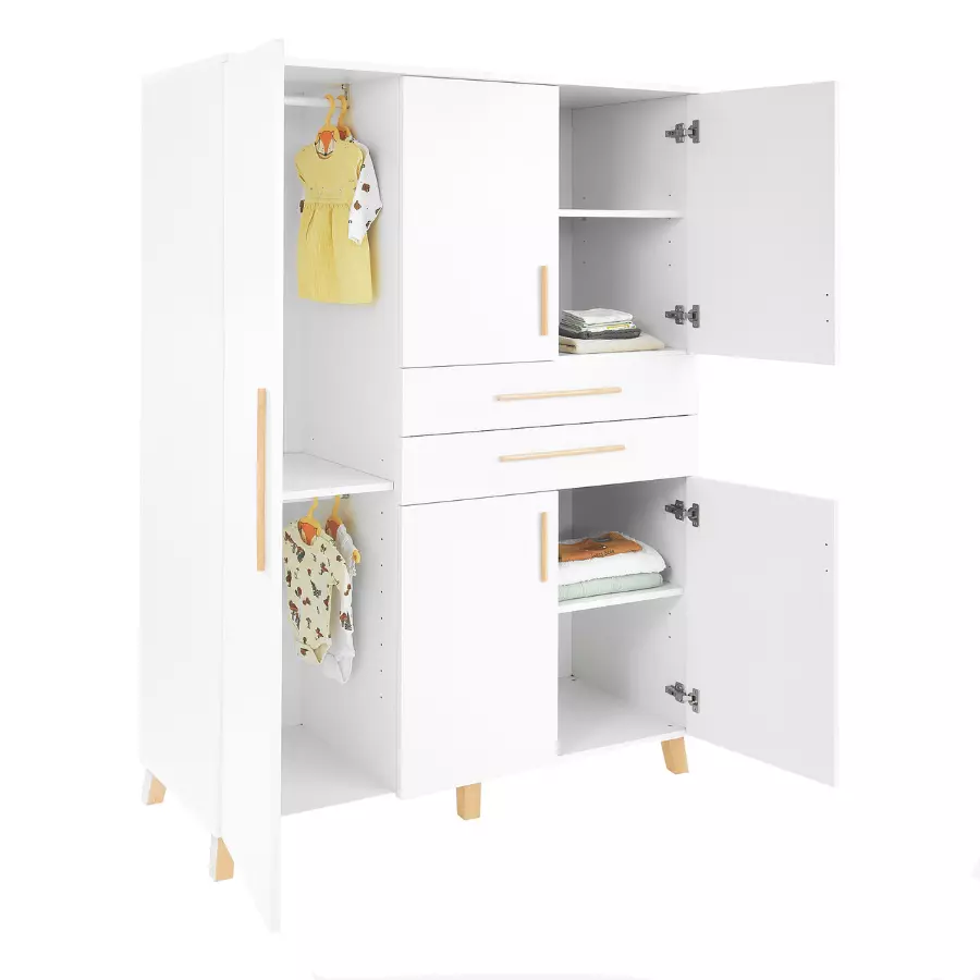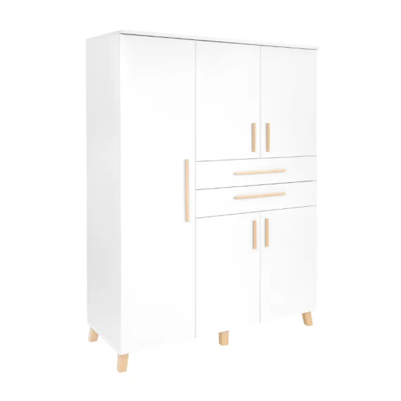 Szafa do pokoju dziecka Classic to nowoczesny trend połączony z drewnianymi uchwytami i nogami. Praktyczny i pojemny mebel idealnie sprawdzi się w pokoju każdego dziecka, w sypialni rodziców, czy przedpokoju. Szafa to praktyczny i wygodny mebel, który bez wątpienia ułatwia codzienne funkcjonowanie w mieszkaniu. Jej wnętrze pozwala wygodnie posegregować wszystkie ubrania oraz niezbędne akcesoria. Wybierz naszą trzydrzwiową szafę z drewnianymi uchwytami i nogami i ciesz się eleganckim i funkcjonalnym rozwiązaniem do przechowywania swoich rzeczy!