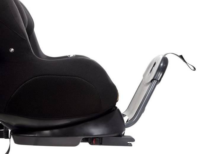 z możliwością regulacji oparcia. Przeznaczony jest dla dzieci od 100 cm do 150 cm wzrostu. Montowany za pomocą systemu isofix lub samego 3-punktowego pasa samochodowego. Dziecko przewożone jest przodem do kierunku jazdy, zapięte 3-punktowym pasem samochodowym przez cały okres użytkowania. Innowacyjna i niespotykana w tym przedziale możliwość obrotu fotela o 90º w stronę drzwi ułatwia dziecku wejście i opuszczenie fotela. Niezwykle komfortowe rozwiązanie w trakcie podróży zapewnia 4-stopniowa regulacja pochylenia oparcia. Optymalna ochrona boczna SIPS skutecznie absorbuje siły działające w momencie uderzenia. Zagłówek jest regulowanym w 6 pozycjach i dostosuje się do wzrostu dziecka. Tapicerka wykonana jest z tkanin o właściwościach odprowadzających wilgoć i działa antybakteryjnie. Można ją zdjąć do prania.
