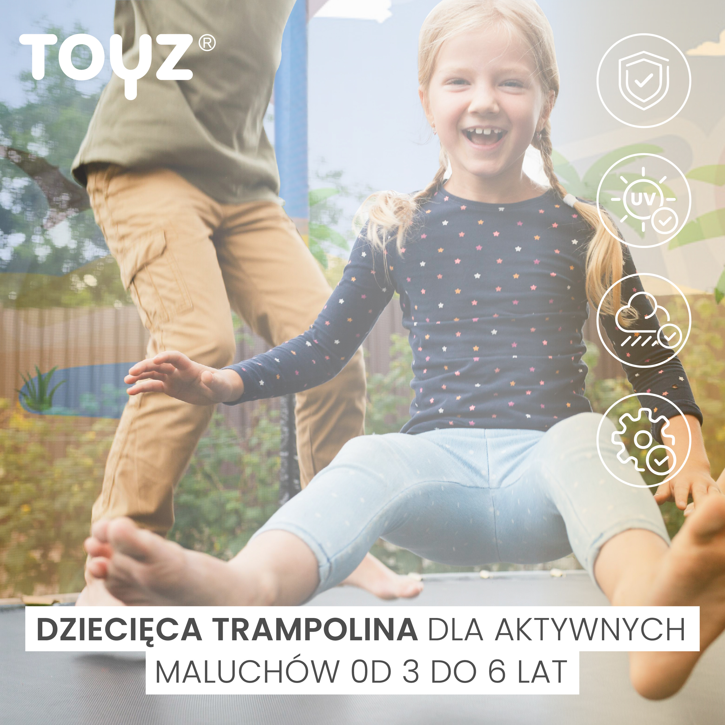 Nasza dziecięca trampolina marki TOYZ to doskonały wybór dla maluchów pełnych energii i gotowych na niezapomniane przygody. Ten solidnie wykonany sprzęt zapewnia godziny bezpiecznej i ekscytującej zabawy zarówno w domu, jak i na świeżym powietrzu. Kolorowe, tematycznie zaprojektowane wzory na siatce przeniosą Twoje dziecko w świat pełen przygód i fantazji.