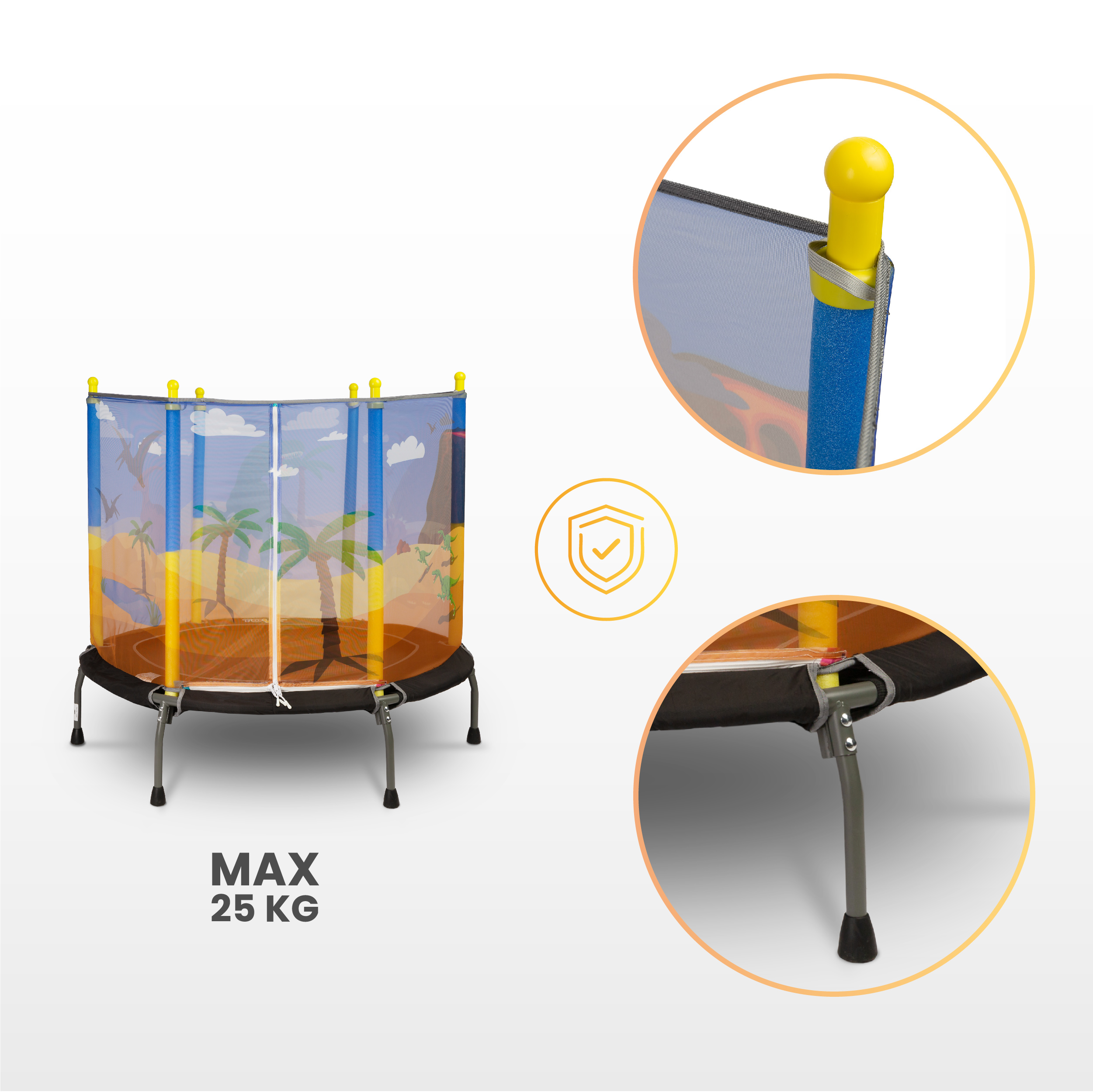 Projektując naszą trampolinę, priorytetem było bezpieczeństwo najmłodszych użytkowników. Wyposażyliśmy ją w ochronną siatkę oraz stabilne nogi z antypoślizgowymi nakładkami, które zapobiegają przesuwaniu się trampoliny na tarasie czy nierównym terenie ogrodu. Dodatkowo, miękkie osłony na słupkach chronią dziecko podczas zabawy.