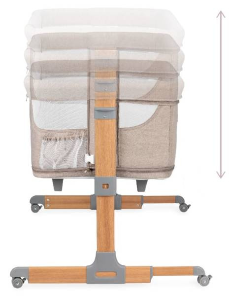 Dzięki 5-stopniowej skali regulacji z łatwością dopasujesz odpowiednią wysokość do łóżka Rodziców. Łóżeczko posiada także możliwość regulacji kąta nachylenia materaca. Z boku łóżeczka MoMi SMART BED znajduje się kieszonka, gdzie możesz przechowywać najpotrzebniejsze akcesoria.