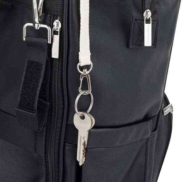 Plecak waży mniej niż kilogram, jest wykonany z wysokiej jakości, wodoodpornego materiału PU, zapewniającego stabilność i długowieczność. Boczne odpinane pasy umożliwiają łatwe mocowanie plecaka do wózka dowolnej marki. Paski na ramiona z dodatkową warstwą z pianki gwarantują wygodę nawet podczas długiego noszenia, a jasna podszewka wewnątrz ułatwia szybkie znalezienie potrzebnych rzeczy i utrzymanie porządku.
