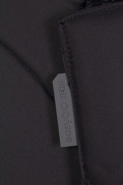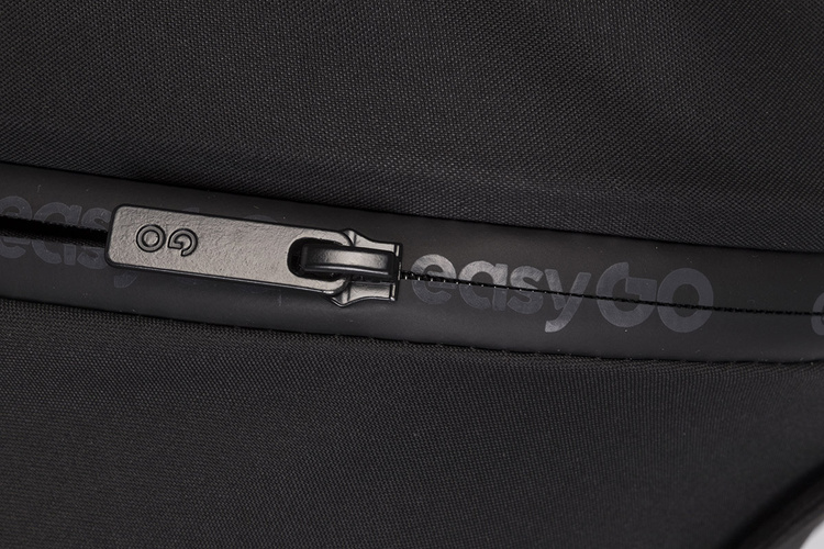 Tapicerka wózka spacerowego EASYGO HERO wykonana została z gładkich i przyjemnych w dotyku tkanin wysokiej jakości w modnych wyrazistych kolorach charakterystycznych dla stylu marki. Metalowe emblematy w kolorze czarny mat, bryzgoszczelny logowany suwak w budce oraz wykończenia z czarnej matowej skóry ekologicznej nadają wózkowi sportowego charakteru.
