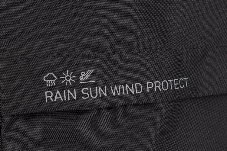 Budka przeciwsłoneczna posiada dodatkową rozpinaną sekcję, która pozwala pochylić ją do przodu i osłonić dziecko przed nisko operującym słońcem. Dodatkowo budka zakończona jest daszkiem przeciwsłonecznym, który w razie potrzeby można złożyć i schować we wnętrzu budki. W tylnej części budki znajdziemy okienko do podglądania dziecka i olbrzymi zamykany panel wentylacyjny wykończony siateczką. Projektanci nie zapomnieli również o praktycznej kieszonce.