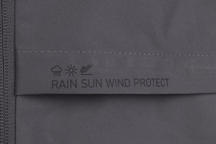 Budka przeciwsłoneczna posiada dodatkową rozpinaną sekcję, która pozwala pochylić ją do przodu i osłonić dziecko przed nisko operującym słońcem. Dodatkowo budka zakończona jest daszkiem przeciwsłonecznym, który w razie potrzeby można złożyć i schować we wnętrzu budki. W tylnej części budki znajdziemy okienko do podglądania dziecka i olbrzymi zamykany panel wentylacyjny wykończony siateczką. Projektanci nie zapomnieli również o praktycznej kieszonce.