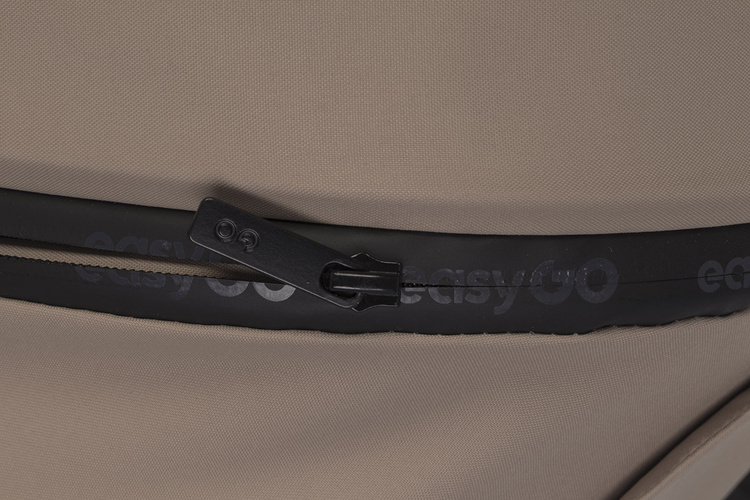 Tapicerka wózka spacerowego EASYGO HERO wykonana została z gładkich i przyjemnych w dotyku tkanin wysokiej jakości w modnych wyrazistych kolorach charakterystycznych dla stylu marki. Metalowe emblematy w kolorze czarny mat, bryzgoszczelny logowany suwak w budce oraz wykończenia z czarnej matowej skóry ekologicznej nadają wózkowi sportowego charakteru.