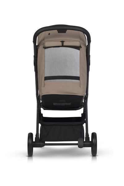 Budka przeciwsłoneczna posiada dodatkową rozpinaną sekcję, która pozwala pochylić ją do przodu i osłonić dziecko przed nisko operującym słońcem. Dodatkowo budka zakończona jest daszkiem przeciwsłonecznym, który w razie potrzeby można złożyć i schować we wnętrzu budki. W tylnej części budki znajdziemy okienko do podglądania dziecka i olbrzymi zamykany panel wentylacyjny wykończony siateczką. Projektanci nie zapomnieli również o praktycznej kieszonce.