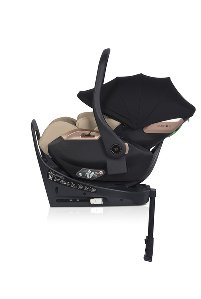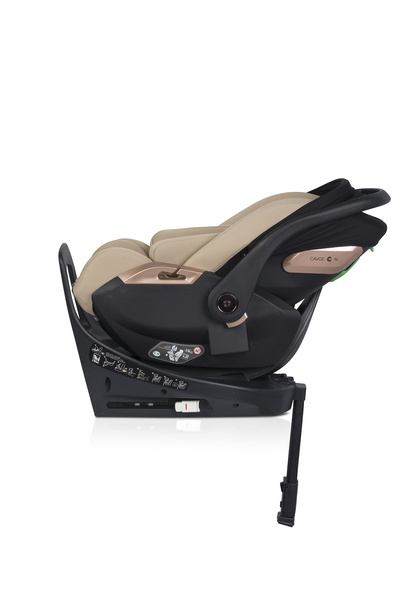 CAVOE AI posiada obrotową bazę ISOFIX, dzięki czemu usadzanie dziecka w foteliku będzie szybkie i wygodne. Po prostu ustaw fotelik bokiem (przodem do drzwi) i wygodnie posadź dziecko. Następnie obróć fotelik tyłem do kierunku jazdy (RWF) i ruszaj w drogę. Obrotowa baza jest również bardzo praktyczna podczas, kiedy to możemy ustawić fotelik bokiem na przykład na potrzeby karmienia dziecka.