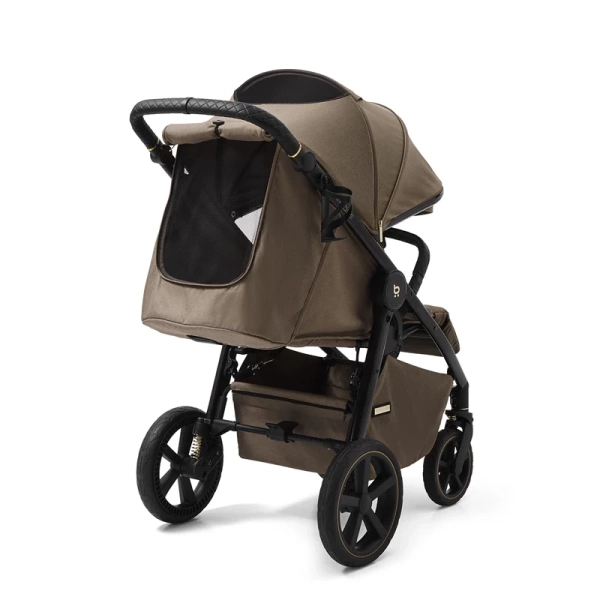 Multifunkcyjna Budka: Wykonana z tkaniny z powłoką hydrofobową i filtrem UV 50, chroniąca przed wiatrem, deszczem i słońcem. Z tyłu wyposażona w siatkę wentylacyjną i okienko do obserwacji dziecka.