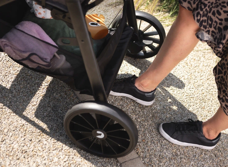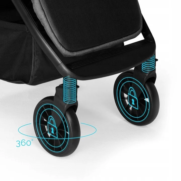 To rozwiązanie sprawia, że prowadzenie wózka jest płynne i komfortowe, niezależnie od terenu.