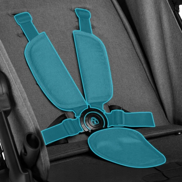 Pasy są miękko wyściełane, co zwiększa komfort podczas spaceru, a ich długość oraz wysokość mocowania szelek można łatwo regulować, dostosowując je do wzrostu malucha.