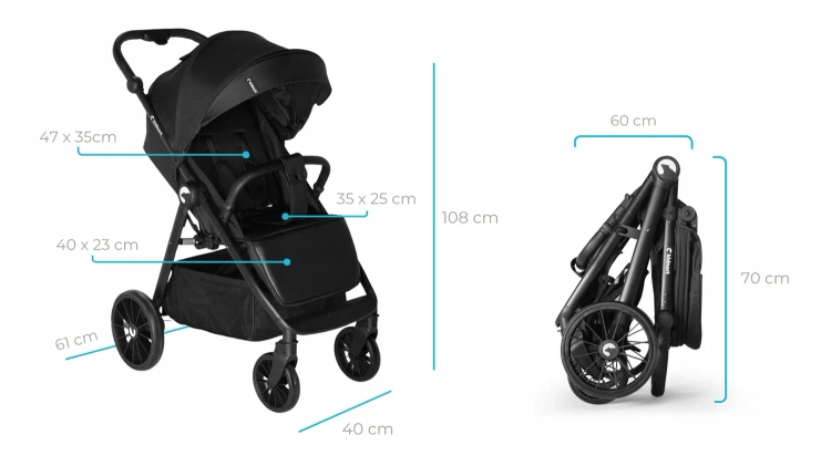 Wózek można łatwo i szybko złożyć jednym ruchem, co czyni go niezwykle wygodnym w codziennym użytkowaniu.