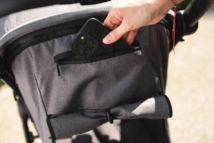 To idealne miejsce na przechowywanie drobiazgów takich jak telefon, klucze czy portfel, dzięki czemu rodzice mają najpotrzebniejsze rzeczy zawsze pod ręką.