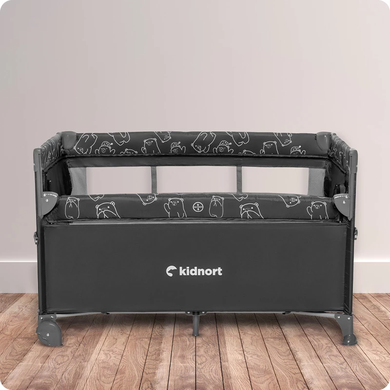 Łóżeczko posiada parę kółek z blokadą znacznie ułatwiając jego przemieszczanie. Blokada kółek gwarantuje stabilność i bezpieczeństwo, zapobiegając niekontrolowanemu przesuwaniu się łóżeczka. Dzięki temu rodzice mogą być pewni, że łóżeczko pozostanie na swoim miejscu, gdy jest to konieczne.