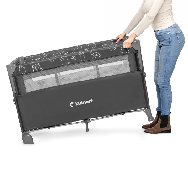 Łóżeczko wyposażone jest w odpinane wejście boczne zapewniając wygodny dostęp do dziecka bez konieczności podnoszenia go z góry. To praktyczne rozwiązanie ułatwia także dziecku samodzielne wchodzenie i wychodzenie z łóżeczka. W ten sposób, łóżeczko pełni również bezpieczną przestrzeń do zabawy.