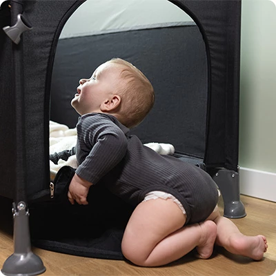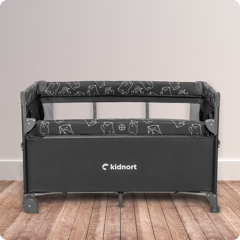 Łóżeczko wyposażone jest w odpinane wejście boczne zapewniając wygodny dostęp do dziecka bez konieczności podnoszenia go z góry. To praktyczne rozwiązanie ułatwia także dziecku samodzielne wchodzenie i wychodzenie. W ten sposób, łóżeczko pełni również bezpieczną przestrzeń do zabawy, gdzie maluch może swobodnie eksplorować i bawić się pod czujnym okiem rodziców.