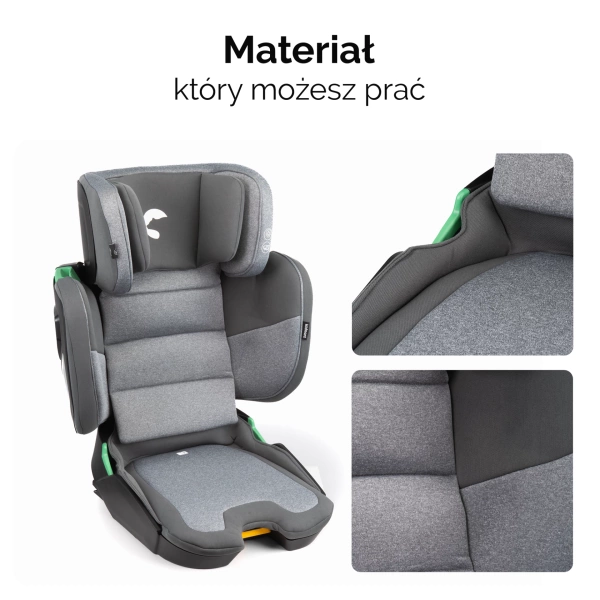 Dzięki wielopoziomowej regulacji fotelika samochodowego Mane będziecie korzystać z niego długo. Dlatego przydatna okaże się możliwość ściągnięcia całego materiału i jego wyprania. Zapewni to higienę i świeżość materiału fotelika. Nie musisz już martwić się o zabrudzenia, ponieważ każdy element fotelika samochodowego Mane można wyczyścić.