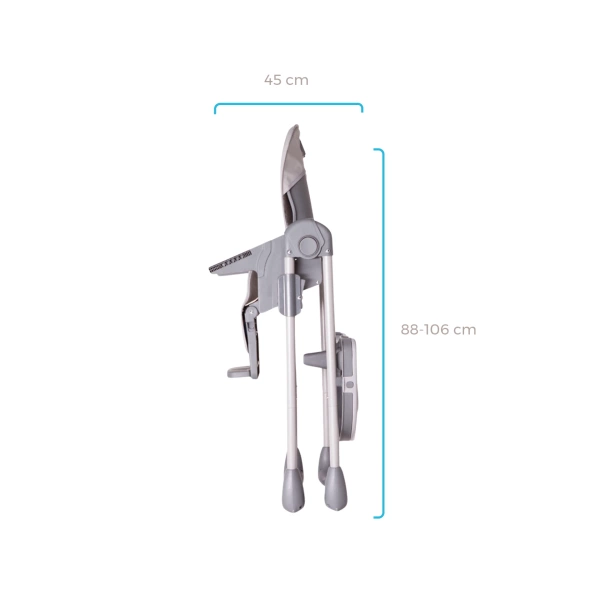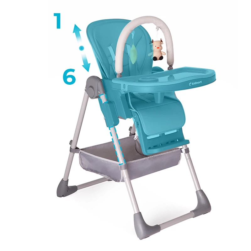 Krzesełko oferuje możliwość regulacji wysokości w sześciu poziomach, co pozwala na łatwe dostosowanie do różnych wysokości stołów i potrzeb dziecka. Dzięki temu można zapewnić optymalne warunki do jedzenia oraz wygodę zarówno dla malucha, jak i dla opiekuna.