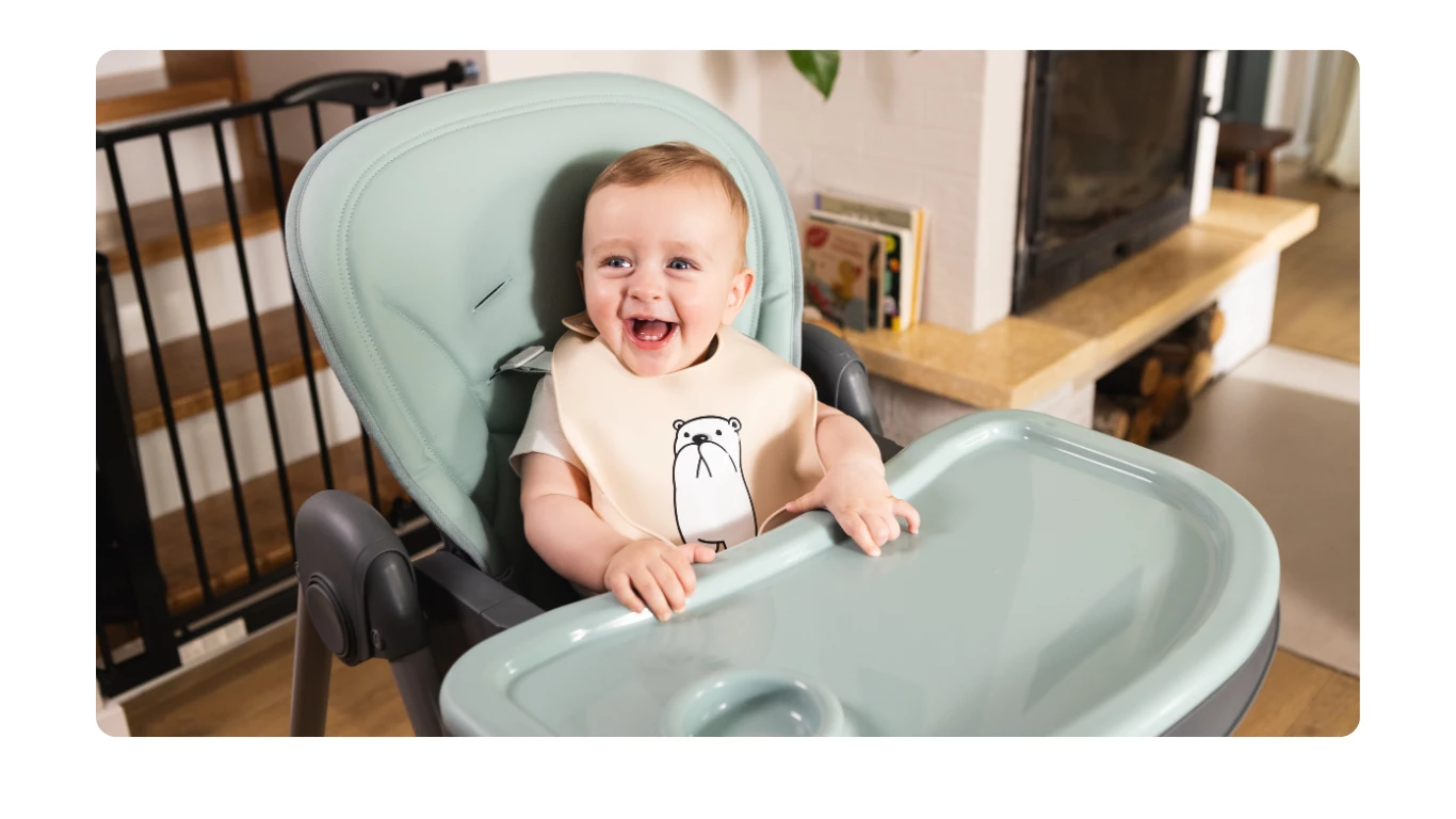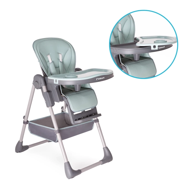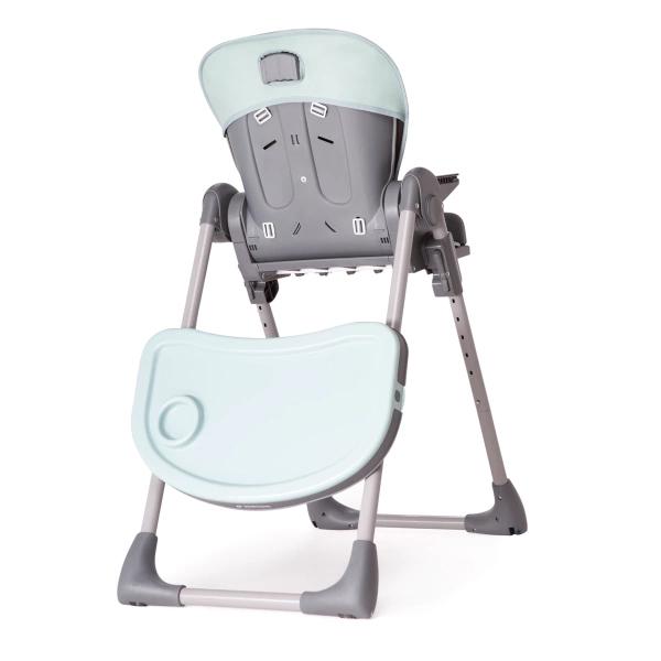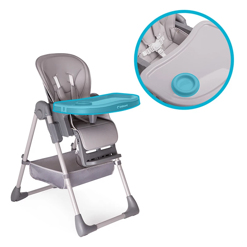 Krzesełko wyposażone jest w tackę z dedykowanym miejscem na kubeczek, co ułatwia dziecku samodzielne spożywanie posiłków i minimalizuje ryzyko rozlania napoju. Tacka staje się bardziej funkcjonalna, zapewniając porządek podczas karmienia.