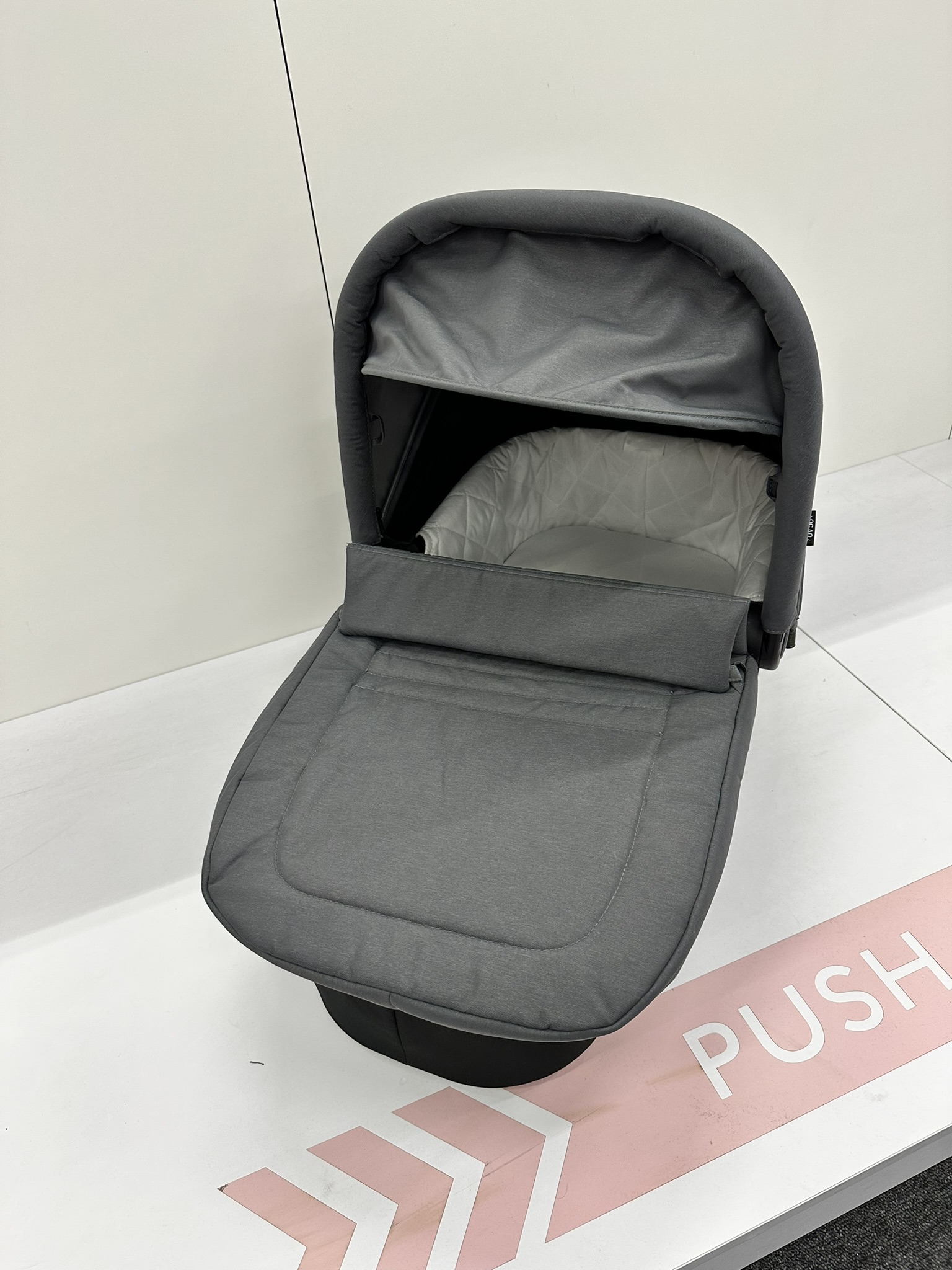 Pikowane i miękko wyściełane wnętrze wraz z osłoną na nóżki. Obszerna budka z daszkiem powleczonym materiałem z ochroną przeciwsłoneczną UV 50+ chroni przed słońcem, jak i wiatrem czy deszczem. Odpowiednia dla noworodków i niemowląt do wagi ok. 9,07 kg.