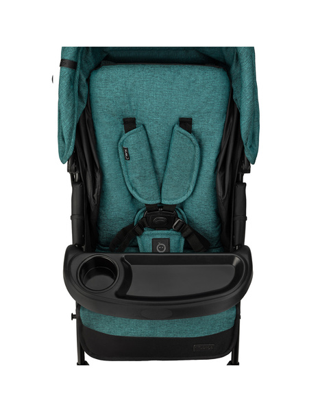 Wózek MoMi ISLA wyróżnia się innowacyjnym stolikiem na przekąski i zabawki, który zastępuje tradycyjny pałąk. Dodatkowo wyposażono go w praktyczną tackę z organizerem dla Rodzica, zawierającym dedykowane miejsce na kubek.