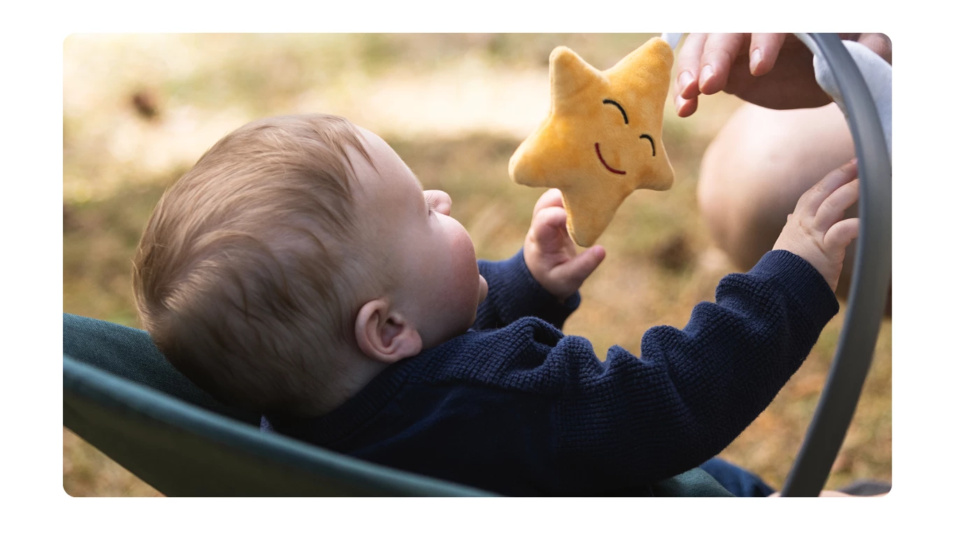 Bujaczek Vinbär pomaga uspokoić i zrelaksować niemowlę dzięki naturalnemu ruchu kołysania, a rodzicom na chwilę odpoczynku. Jego minimalistyczny wygląd sprawia, że łatwo wpasowuje się w każde wnętrze. Pałąk z zabawkami umieszczony nad bujaczkiem zapewnia dodatkową rozrywkę i stymulację sensoryczną dla dziecka.