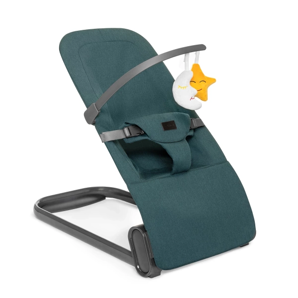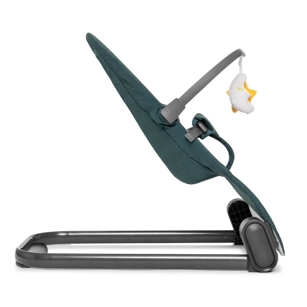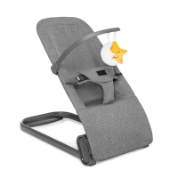 Bujaczek wyposażony jest w całkowicie odpinany pałąk z dwiema zabawkami, które dostarczają dziecku dodatkowej rozrywki. Pałąk można łatwo zdjąć, co ułatwia dostęp do dziecka i czyszczenie bujaczka.