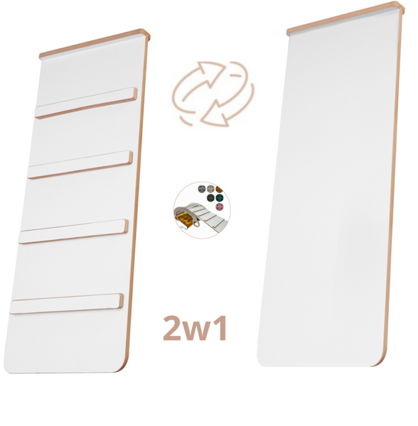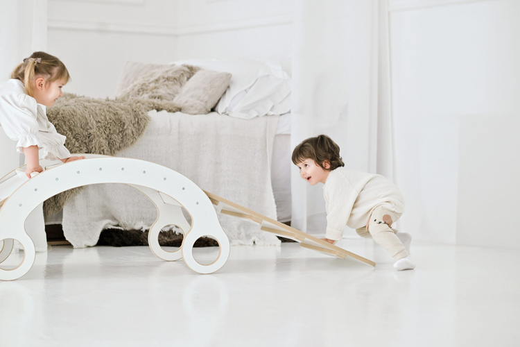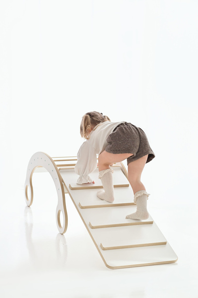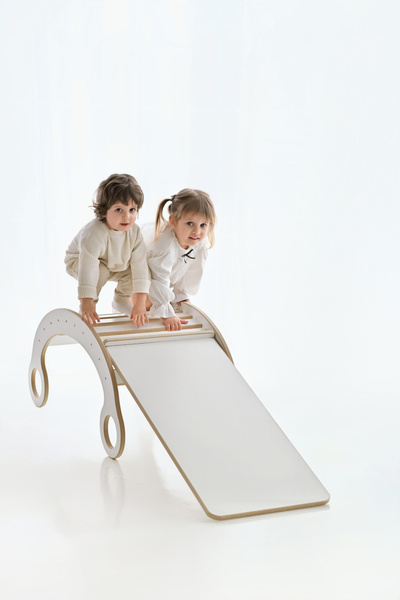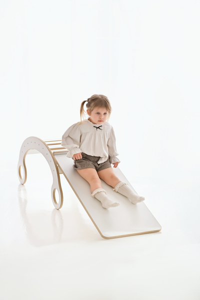 Oto zestaw wspinaczkowy, domowy plac zabaw – Bujak Montessori i drabinka/zjeżdżalnia, niezwykła zabawka dla dzieci, która stymuluje ich wyobraźnię i rozwija różnorodne umiejętności. Ten innowacyjny bujak może być używany w dwóch ustawieniach: jako klasyczna huśtawka lub jako most. Jego zastosowania są ograniczone jedynie przez dziecięcą kreatywność.