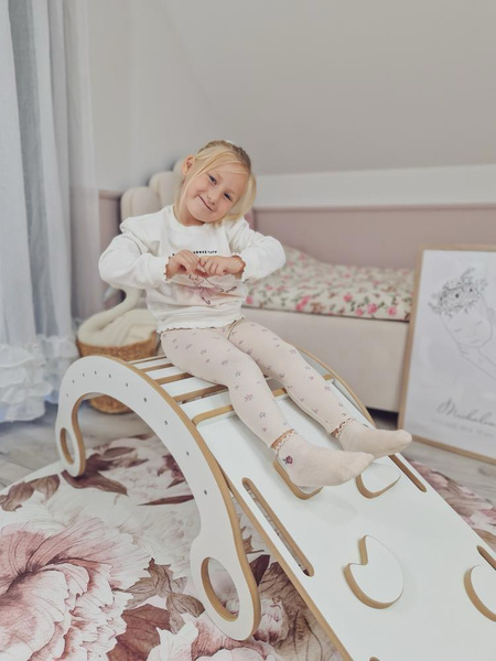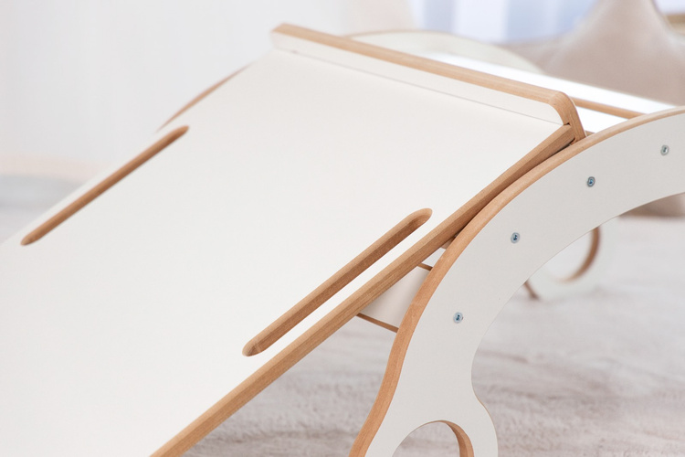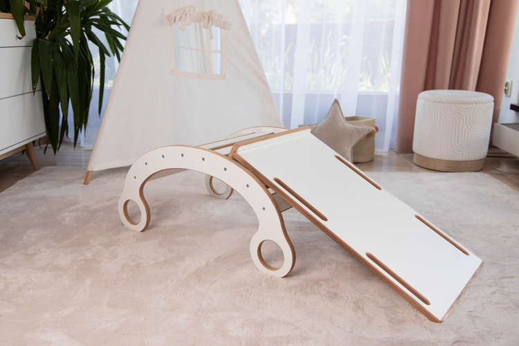 Ścianka wspinaczkowa i zjeżdżalnia do bujaka Montessori stanowią doposażenie do bujaka Montessori.