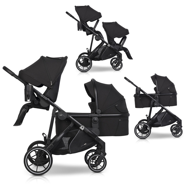 Spodziewasz się bliźniąt? DUOFLEX może również być skonfigurowany jako wózek dla bliźniąt. Wystarczy, że zamówisz wersję z dwiema gondolami i dwoma siedziskami. EASYGO DUOFLEX bez problemu pomieści 2 duże pełnowymiarowe gondole lub 2 foteliki samochodowe dla dzieci od 40 do 87 cm, a jak już dzieci zaczną samodzielnie siadać zainstalujesz dwa duże siedziska spacerowe. Siedziska możesz ustawiać w dowolnej konfiguracji: przodami do Ciebie, przodami do kierunku jazdy lub nawet w taki sposób, żeby dzieci były przodami do siebie.