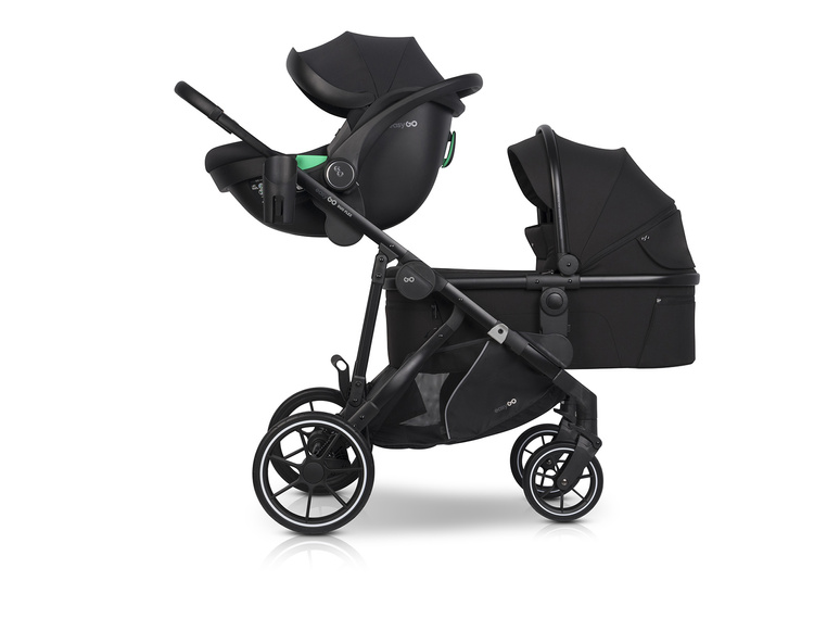 Spodziewasz się bliźniąt? DUOFLEX może również być skonfigurowany jako wózek dla bliźniąt. Wystarczy, że zamówisz wersję z dwiema gondolami i dwoma siedziskami. EASYGO DUOFLEX bez problemu pomieści 2 duże pełnowymiarowe gondole lub 2 foteliki samochodowe dla dzieci od 40 do 87 cm, a jak już dzieci zaczną samodzielnie siadać zainstalujesz dwa duże siedziska spacerowe. Siedziska możesz ustawiać w dowolnej konfiguracji: przodami do Ciebie, przodami do kierunku jazdy lub nawet w taki sposób, żeby dzieci były przodami do siebie.