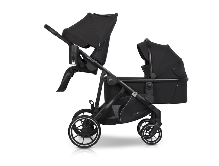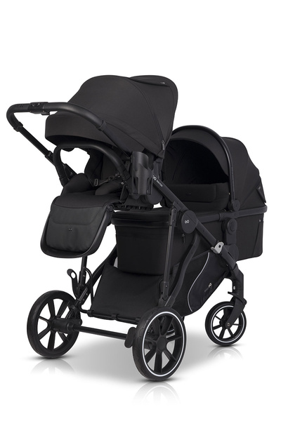 Easy Go Duoflex Wózek Głęboko-Spacerowy Bliźniaczy Rok po Roku Ebony Black 2 Siedziska 2 Gondole