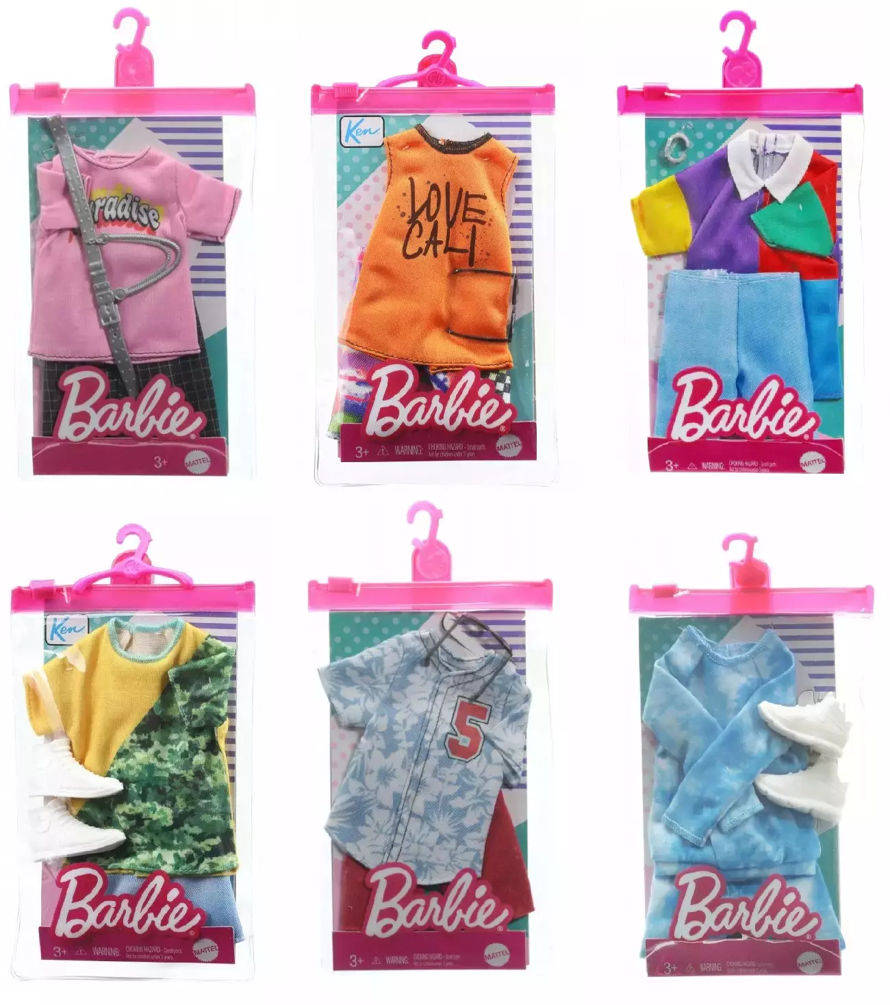 Ta niezwykła kolekcja ubranek jest tak wszechstronna jak sam Ken! Znajdziesz tu wyjątkowe interpretacje najnowszych trendów. W każdym zestawie jest jeden strój (koszulka i spodnie) i jedno akcesorium dla lalki Ken (lalka sprzedawana oddzielnie).