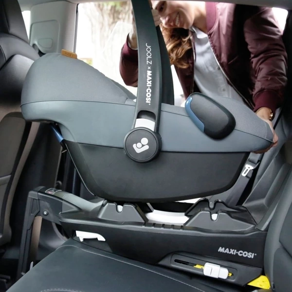 Pebble Pro i-Size można wpiąć na bazę za pomocą jednego kliknięcia, a sygnalizacja świetlna i dźwiękowa potwierdzi prawidłową instalację.