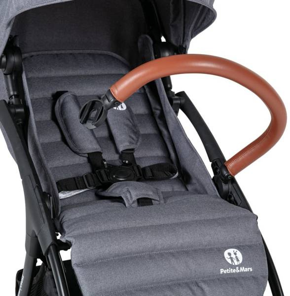 Niebanalny kształt i stylowe wykończenia z ekoskóry sprawiają, że na spacerze wózkiem Petite&Mars Cross poczujesz się wyjątkowo i elegancko.