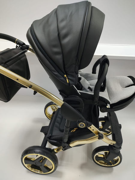 Uchwyt z regulowaną wysokością można regulować w zakresie 180°, aby dopasować go do potrzeb wszystkich członków rodziny, a wykończenie z ekoskóry zapewnia najwyższy komfort. Pomysłowy mechanizm składania pozwala na kompaktowe złożenie, podwozie można złożyć razem z zamontowanym siedziskiem spacerówki, chroniąc tapicerkę i zapewniając higienę.