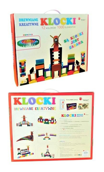 Duże domino drewniane składające się z 1000 elementów. Wymiary opakowania: 450 x 200 x 60 mm.
