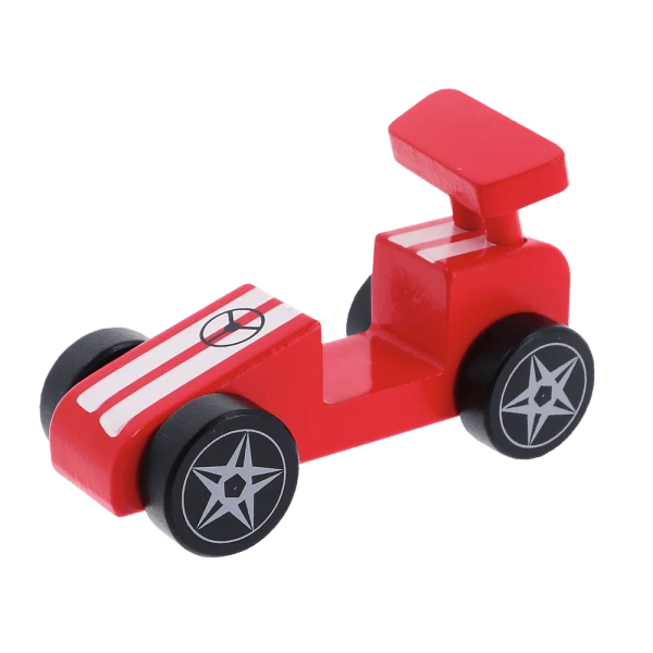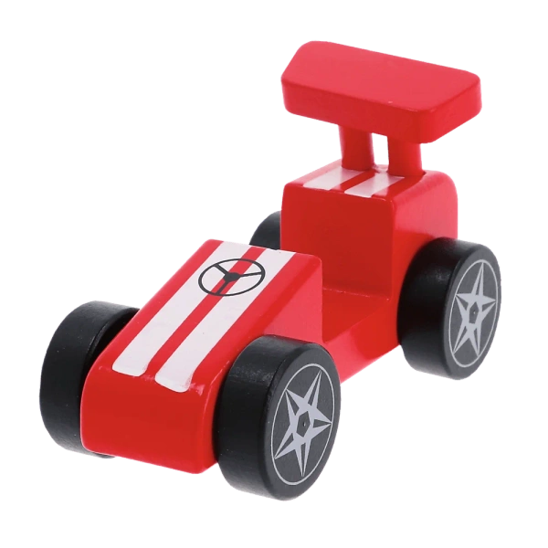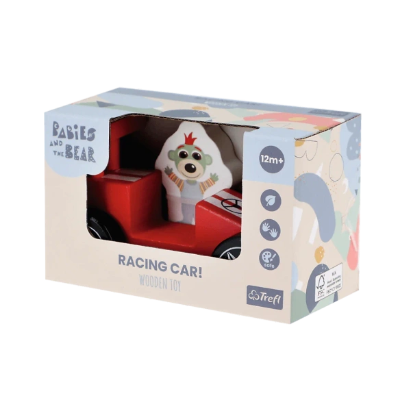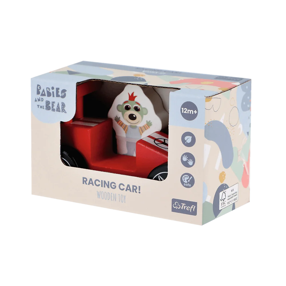 Zabawka drewniana Racing car Red - wyścigówka z serii Wooden Toys to jedna z trzech pojazdów inspirowanych bajką "Bobaski i Miś".