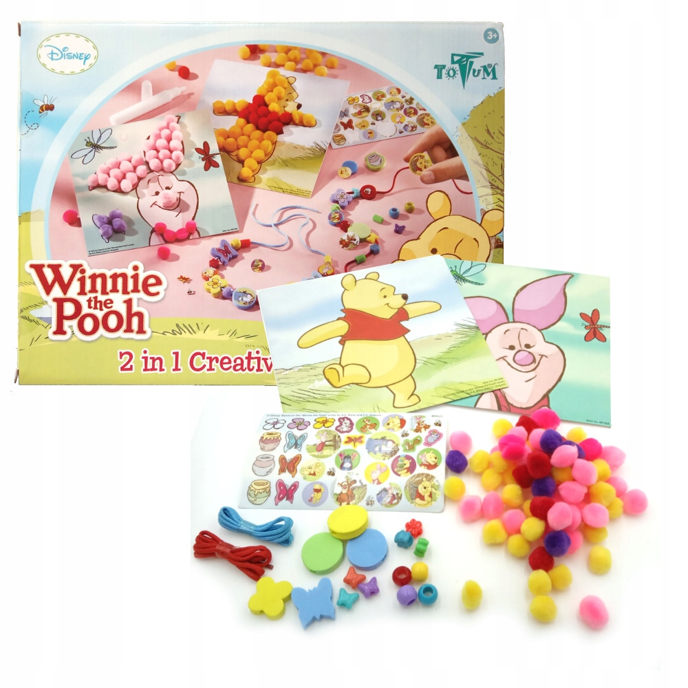 W jednym opakowaniu znajdziemy podwójny zestaw kreatywny z licencją Kubusia Puchatka. Zawiera on akcesoria do samodzielnego stworzenia biżuterii oraz obrazek-wyklejankę z kuleczek. Produkt wyróżnia jakość - doskonałe wzornictwo i dbałość w wykonaniu najdrobniejszych elementów wchodzących w skład zestawu. Dzieci pracując z zestawami TOTUM rozwijają swoją wyobraźnię, zdolności manualne, jak również wyrażają własną osobowość.