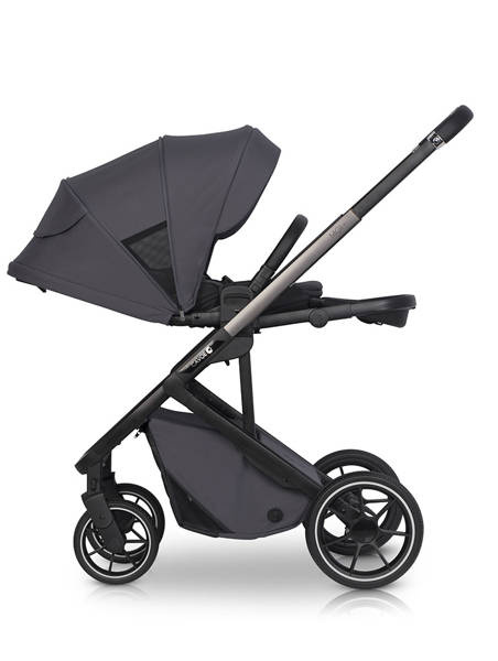 Siedzisko można zamontować w obu kierunkach i również w obu kierunkach wózek można złożyć. Budka przeciwsłoneczna jest duża i posiada dodatkową zamykaną sekcję, która pozwoli osłonić dziecko przed nisko operującym słońcem.